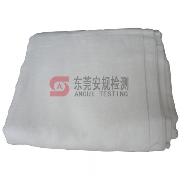 149.2.3 The cloth used in the abnormal test is to be bleached cheesecloth, 36 inches (91.4 cm) wide, running 14 – 15 square yards per pound (26 – 28 m2/kg) and having what is known in the trade as a count of 32 by 28; that is, for any square inch 32 threads in one direction and 28 in the other direction (for any square centimeter, 13 threads in one direction and 11 in the other direction). The cloth is to be loosely draped over the portable luminaire being tested in order to serve as a flame indicator (presence of ash or burnt holes) not as a blanket to trap heat.